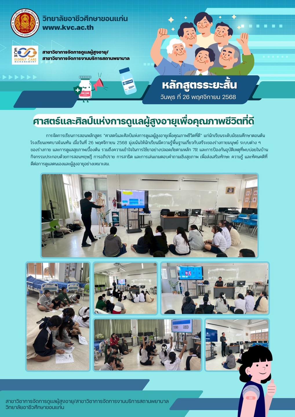 หลักสูตร “ศาสตร์และศิลป์แห่งการดูแลผู้สูงอายุเพื่อคุณภาพชีวิตที่ดี” พร้อมกิจกรรมเกมตอบคำถามสร้างการมีส่วนร่วม — นักเรียนโรงเรียนเทศบาลโนนทัน