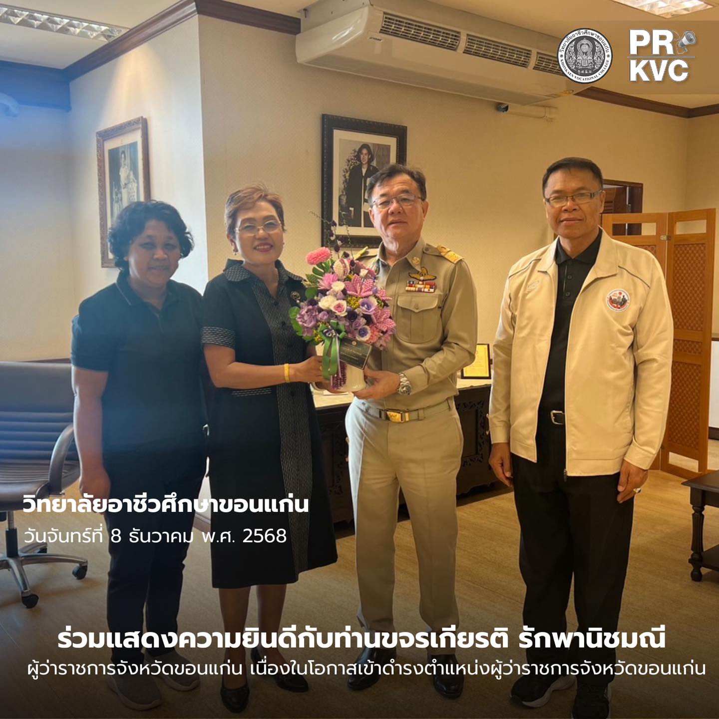 ดร.สิริรัชนา เนาว์โสภา ผู้อำนวยการวิทยาลัยอาชีวศึกษาขอนแก่น พร้อมด้วยคณะผู้บริหาร ร่วมแสดงความยินดีกับท่านขจรเกียรติ รักพานิชมณี ผู้ว่าราชการจังหวัดขอนแก่น