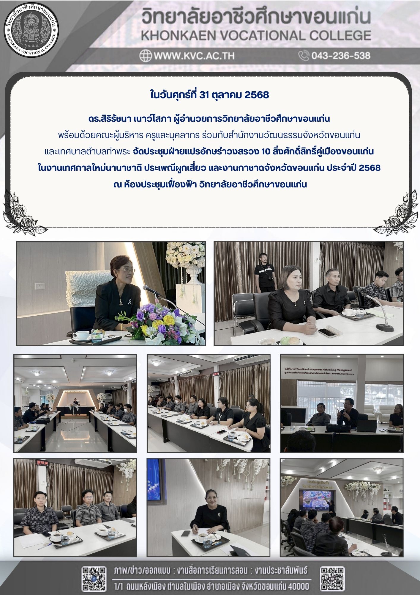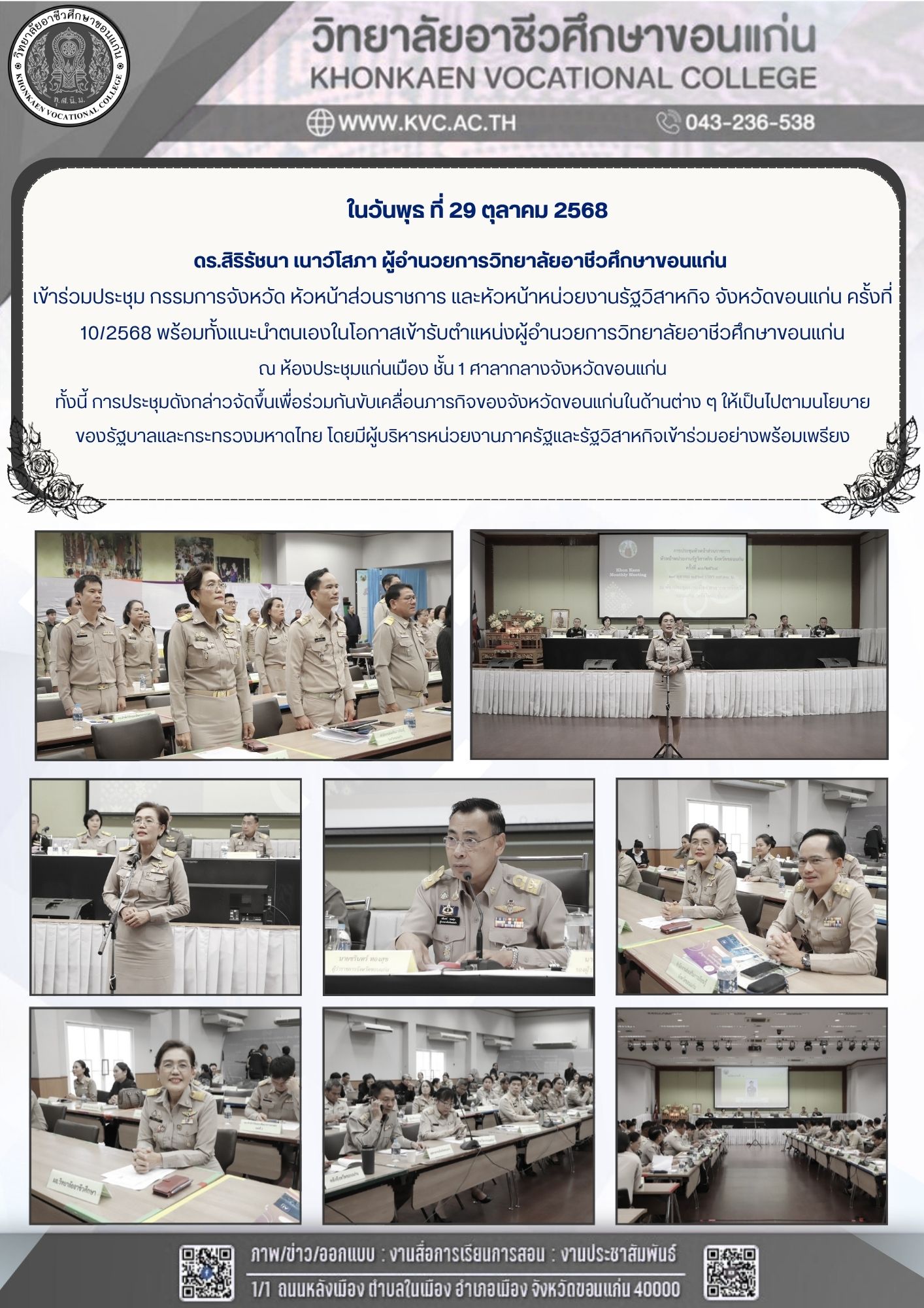 ดร.สิริรัชนา เนาว์โสภา ผู้อำนวยการวิทยาลัยอาชีวศึกษาขอนแก่น เข้าร่วมประชุม กรรมการจังหวัด หัวหน้าส่วนราชการ และหัวหน้าหน่วยงานรัฐวิสาหกิจ จังหวัดขอนแก่น ครั้งที่ 10/2568