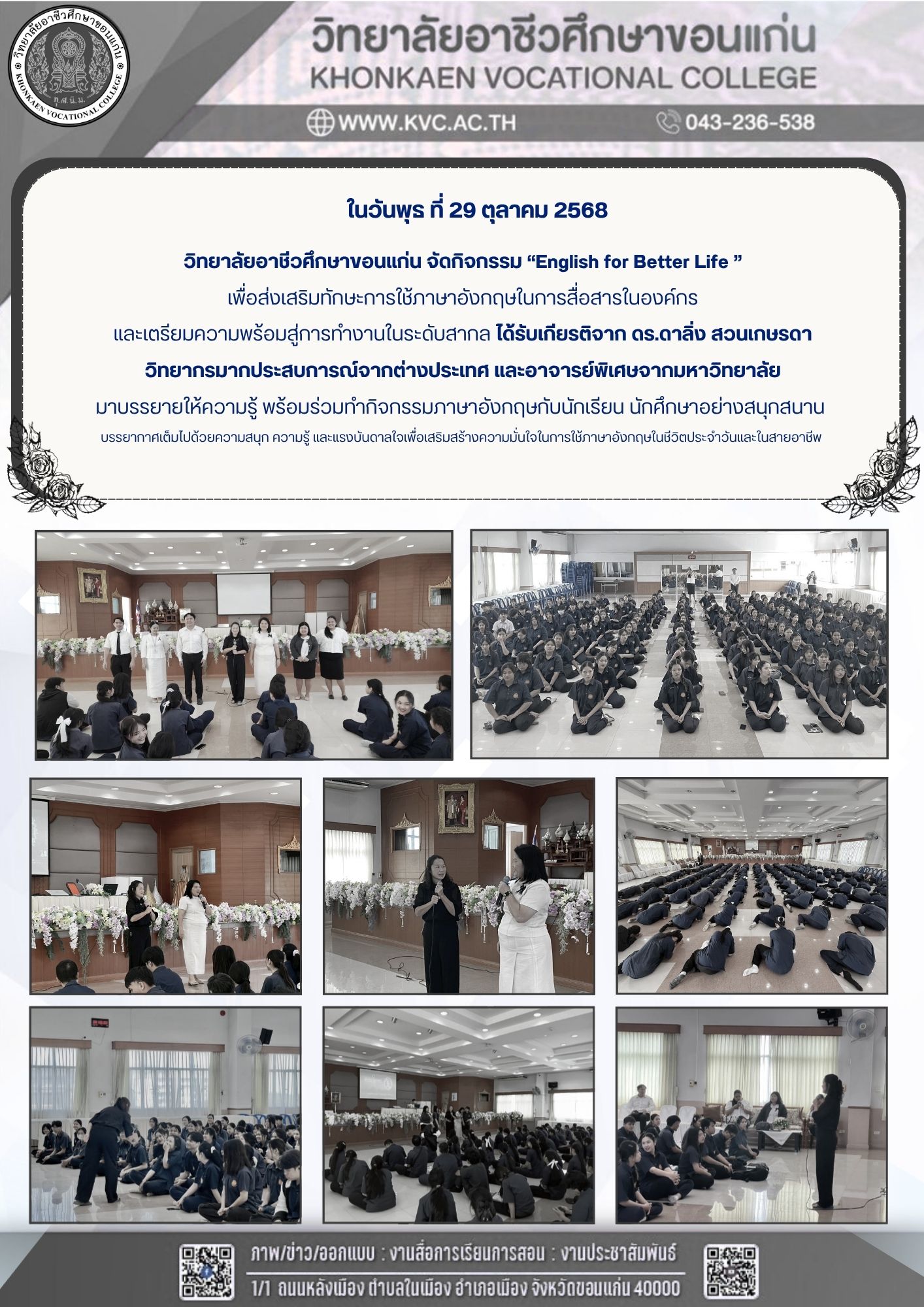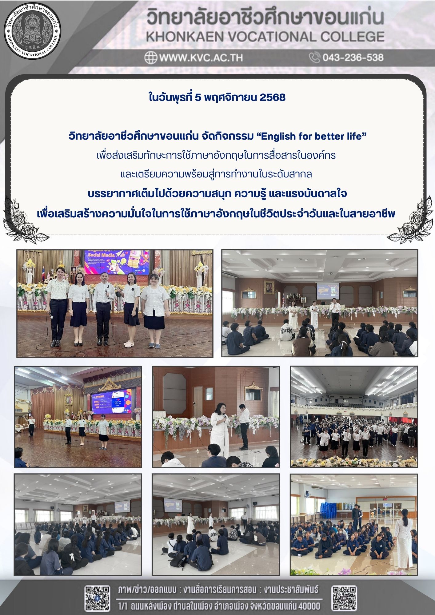 กิจกรรม “English for better life” เพื่อส่งเสริมทักษะการใช้ภาษาอังกฤษในการสื่อสารในองค์กร และเตรียมความพร้อมสู่การทำงานในระดับสากล