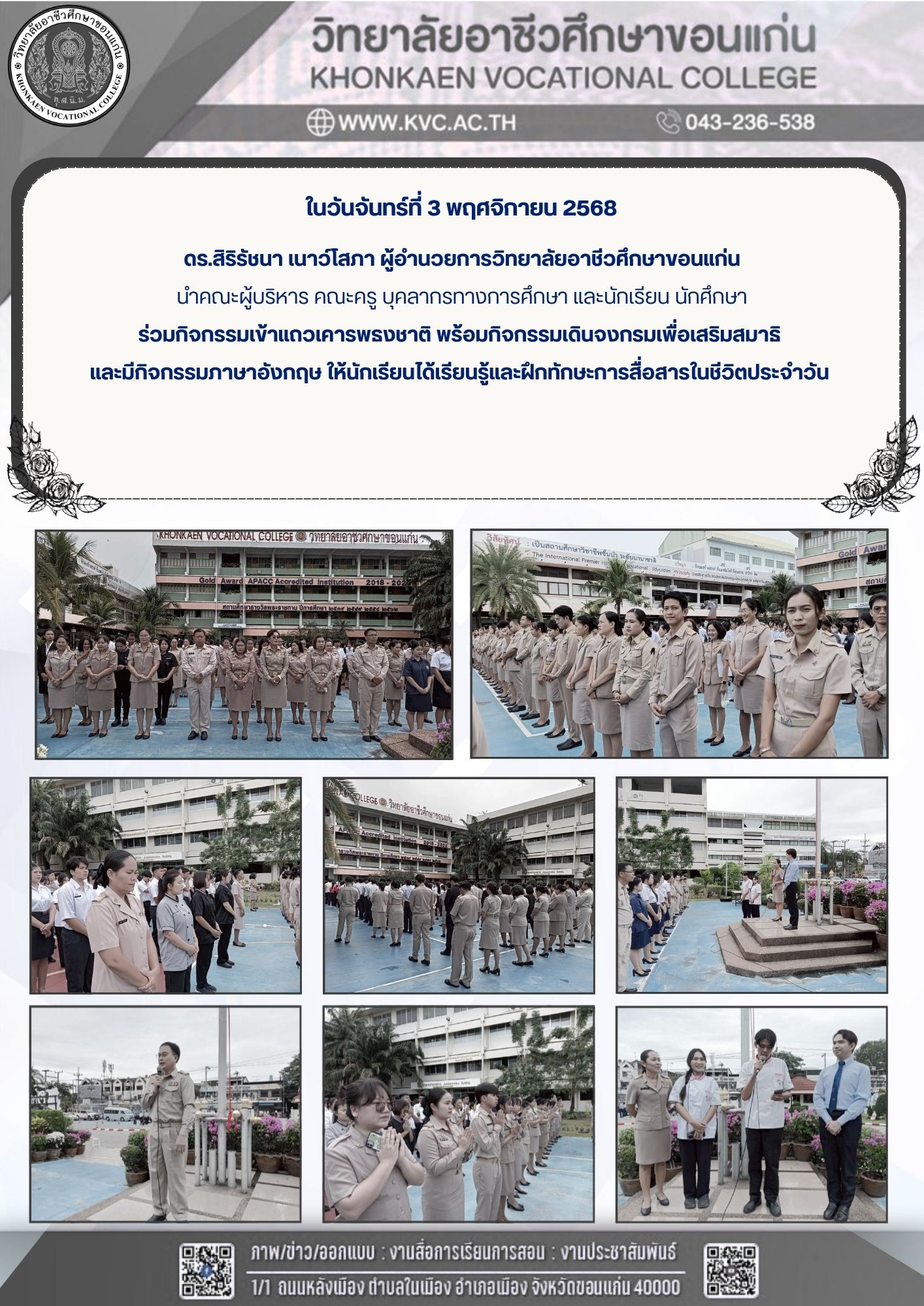 กิจกรรมเข้าแถวเคารพธงชาติ และน้อมรำลึกถึง พระมหากรุณาธิคุณ สมเด็จพระนางเจ้าสิริกิติ์ พระบรมราชินีนาถ พระบรมราชชนนีพันปีหลวง